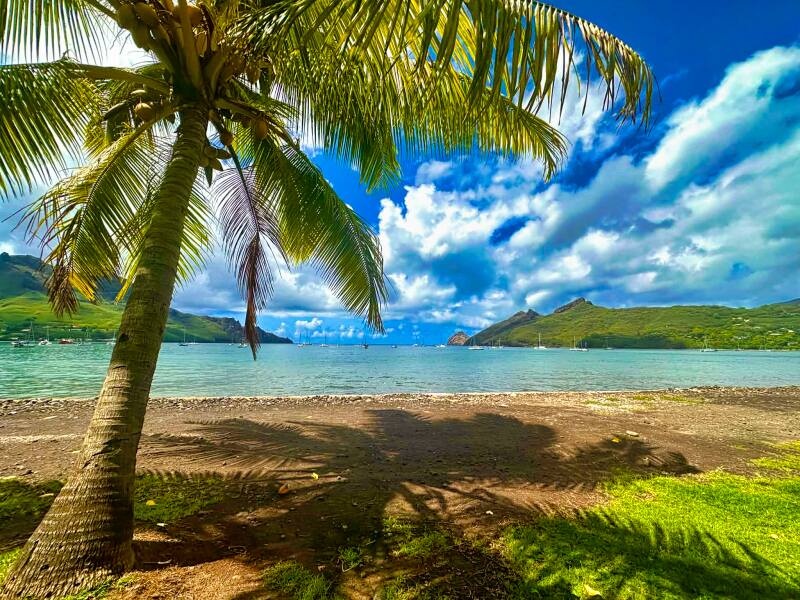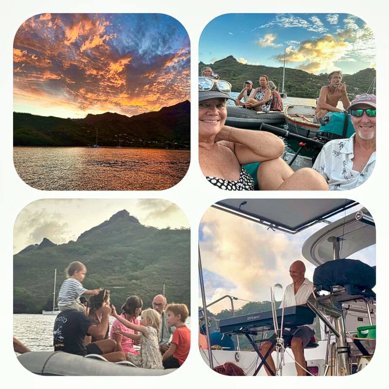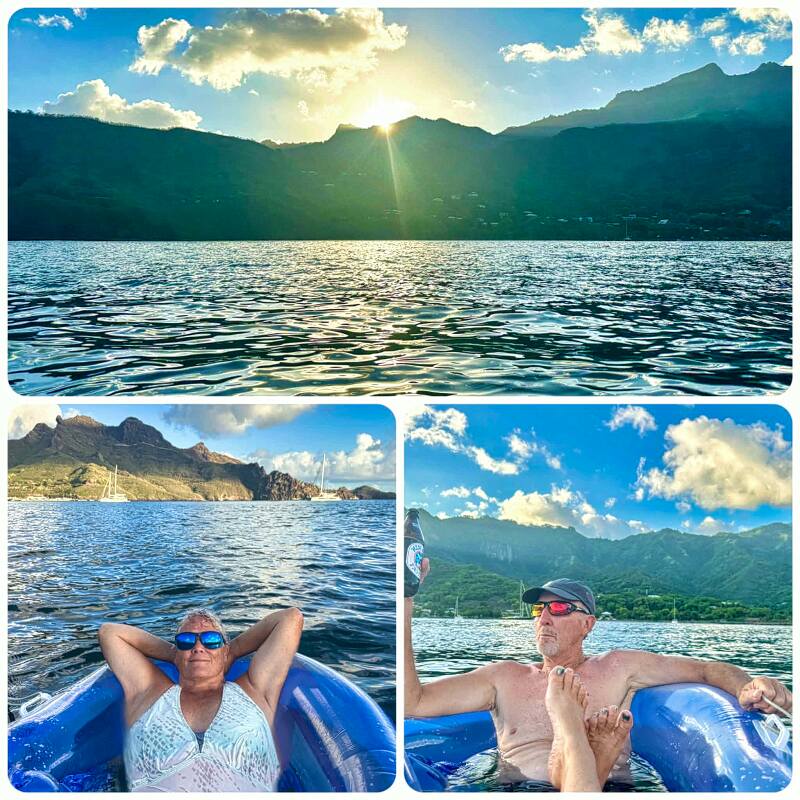 Despite everything, we are not in a terrible place to be stuck. We are in the Marquesas. It is one of the most beautiful places on Earth. We got to attend a concert on the water. A French couple on their catamaran have given concerts in several harbors. Everyone shows up in their dinghies and ties onto the back of their boat. He plays amazing music while we have our adult beverages and snacks. We were blessed with an unusually beautiful sky the night of the concert. It was amazing.